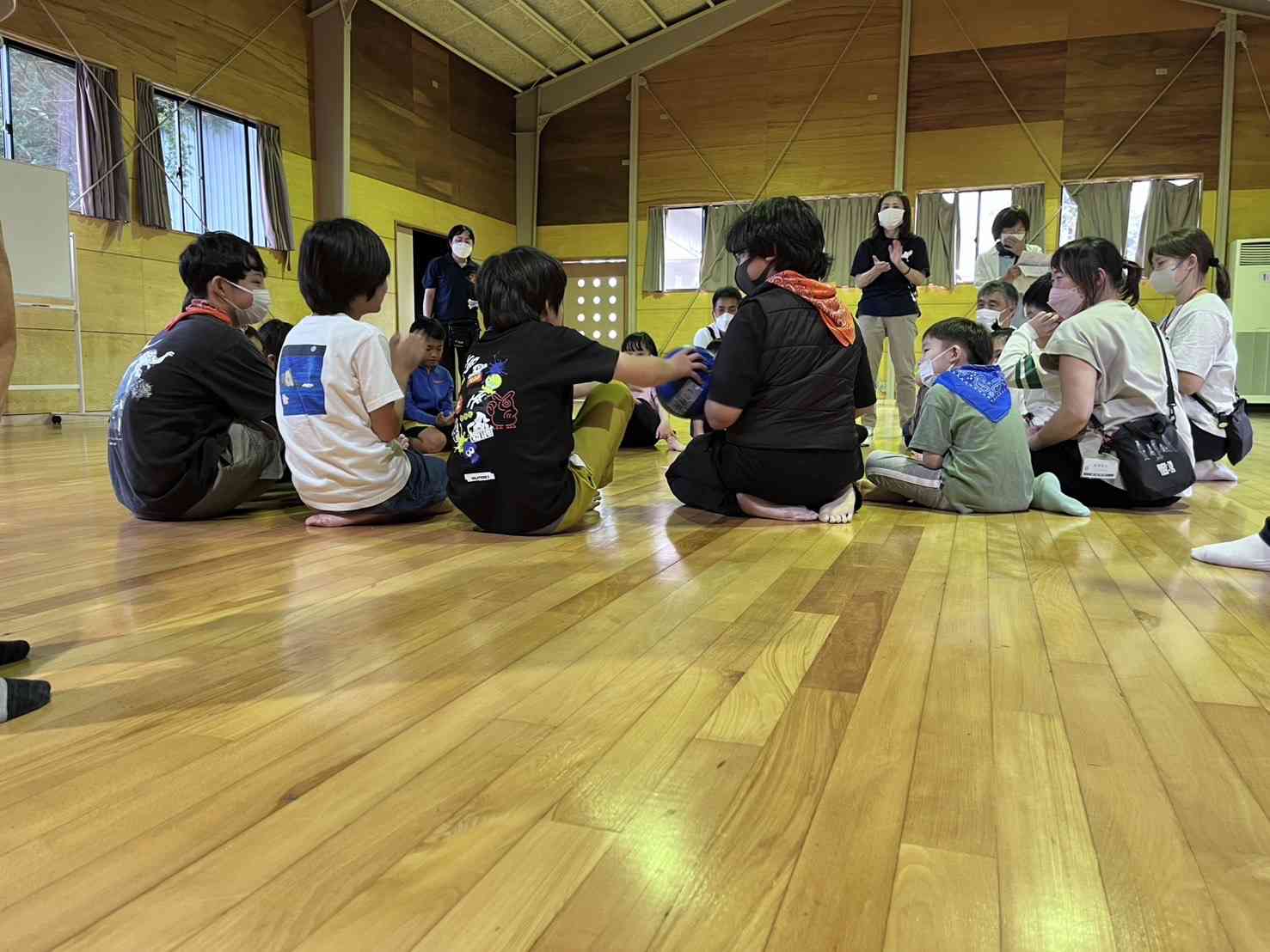サイエンスドームを出発し、無事に宿に到着しました。3日間お世話になる宿の方にみんなで挨拶をしました。開泊式の後はお待ちかねのレクリエーション!担当の子どもたちが考えたゲームを行い、盛り上がりました。部屋ではみんなでカードゲームをするなどして過ごしています。