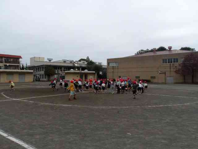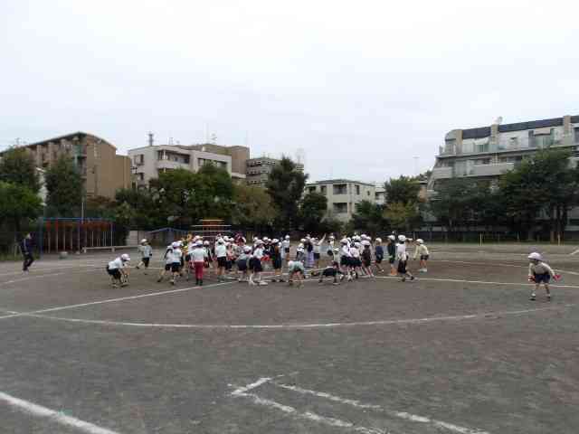 いよいよ今週の土曜日は運動会です。 暑かったり寒かったりする天気に左右されながらも、「最後まであきらめずに頑張る」をめあてに一生懸命練習に取り組んでいます。 40m走では、ペアの6年生に教えてもらったスタートとゴールに気を付けながらまっすぐに走り抜けます。ゴール後に得点の紙を入れる作業も楽しんでいます。 玉入れでは、玉を入れる動きはもちろん、入退場のかわいさや合間のダンスにも注目してください。 当日は、たくさんの声援と励ましをお願いします。 ★写真は、玉なしで玉入れの練習をしているところです。遠くにころがった玉を取りに行こうとする子が何人もおり、本番を想定としている動きに、練習の成果を感じます。【添付ファイル】